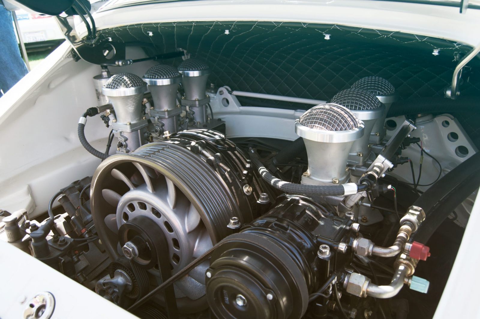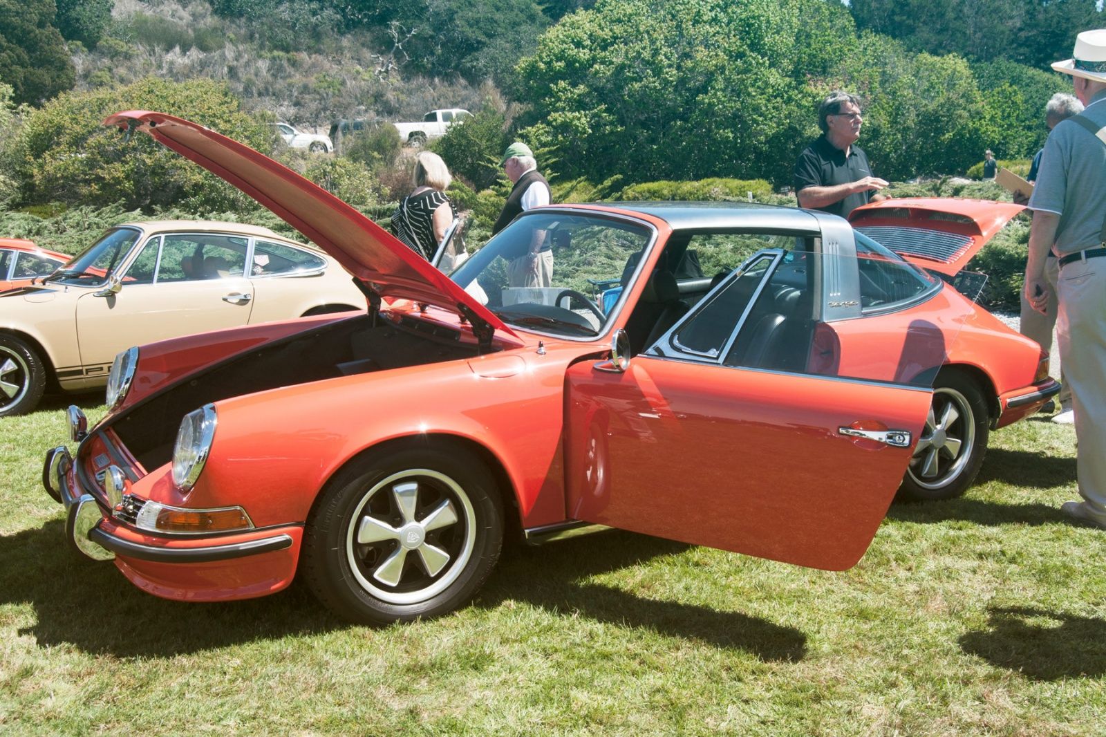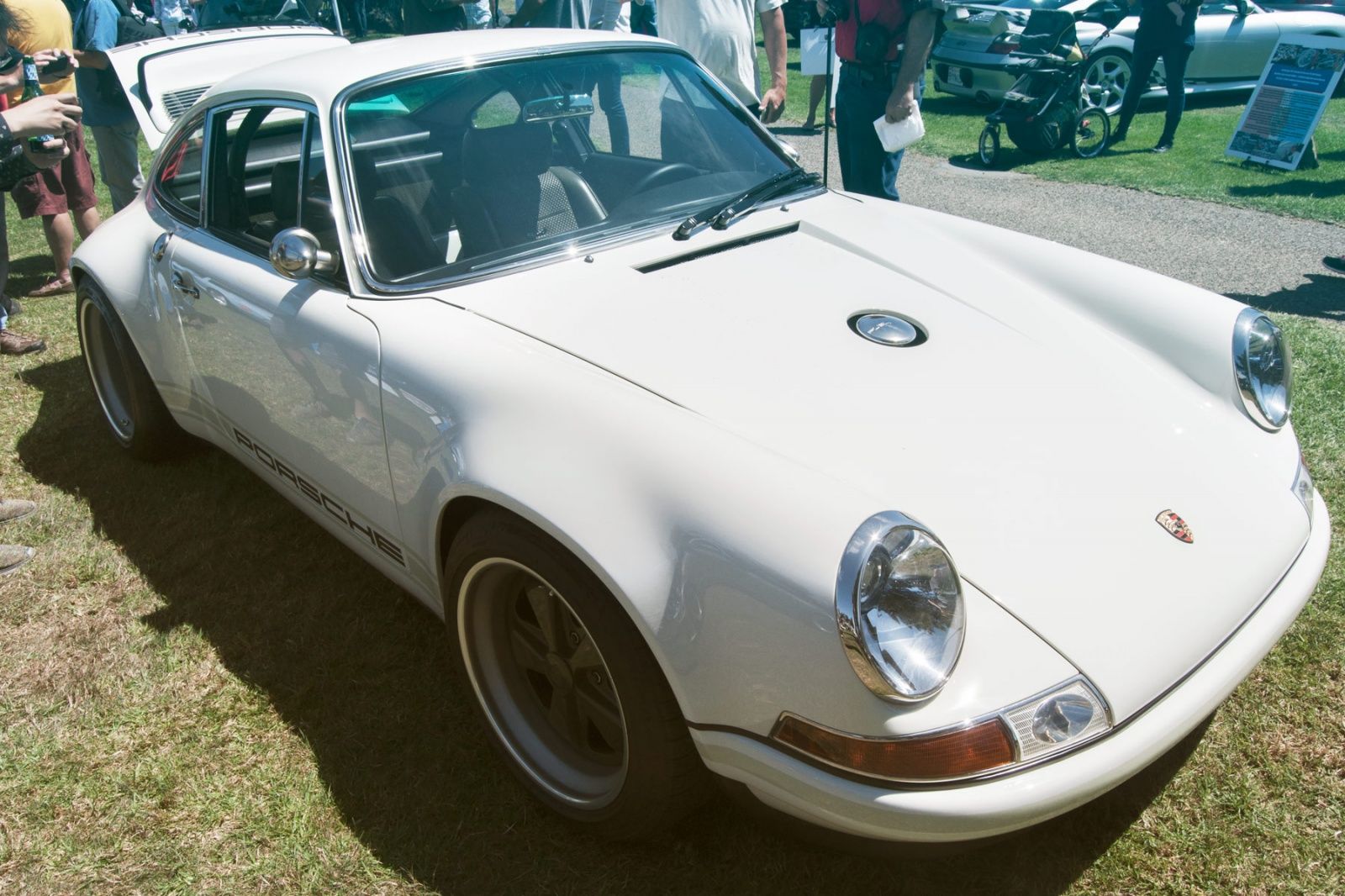While walking around the event smiling like a kid, I heard someone come on the loud-speaker, and ask the owner of the Singer car to return to his vehicle to assist in the concours judging. My jaw dropped. There was a Singer in our midst; one car that is on my bucket-list of things to see. Everything else vanished at that moment, and all my attention was directed to finding that Singer. I finally came upon it, and spent the next 30-40 minutes pouring over every last detail of it's beauty, precision, and attention to detail. I've seen the videos and read the articles, and after seeing one up close I can tell you with all certainty that it's nothing like anything you've ever seen. It's not wild like a Lamborghini or fast like a Ferrari; but it's perfect where it needs to be perfect, and the details are un-matched by todays manufacturers (except Pagani perhaps)